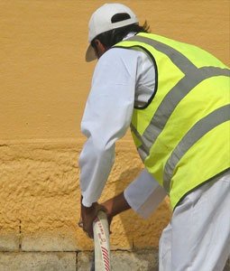 To apply as high strength (> 15 MPa) decorative textured color render for landscaping works. Application by spray machine/manual @ 15-50mm. |