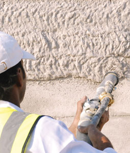 To apply as fine thin coat gypsum plaster directly on concrete surfaces. Application by spray machine/manual @ 4-6mm. |